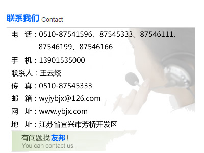 聯系地址:江蘇省宜興市芳橋開發(fā)區 郵編:214214